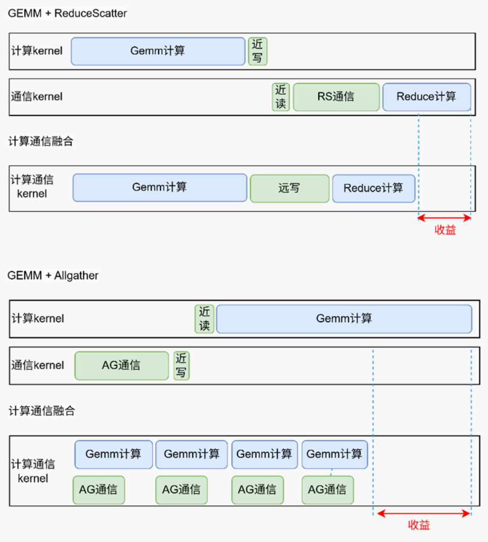 1. GEMM+ReduceScatter/AllGather 融合: