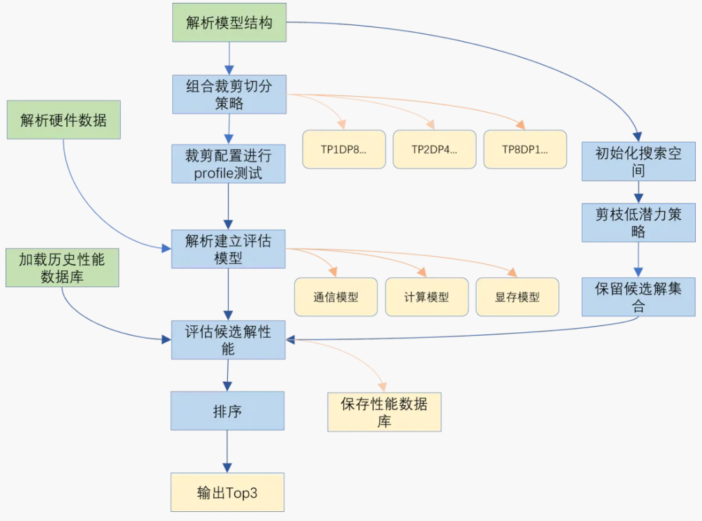 在 Megatron-LM 里,你可能同时考虑张量并行(Tensor Parallel)、流水线并行(Pipeline Parallel)、数据并行(Data Parallel)、专家并行(MoE Parallel)等维度。不同组合下,显存占用和性能差别巨大,要人工一一尝试,既浪费时间,也容易错过更优解。